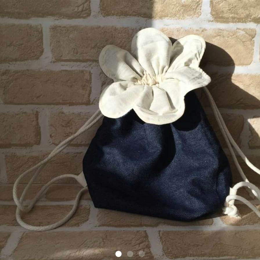 【雑誌CREA掲載中】体操着袋にも使えるお花リュック(デニム)